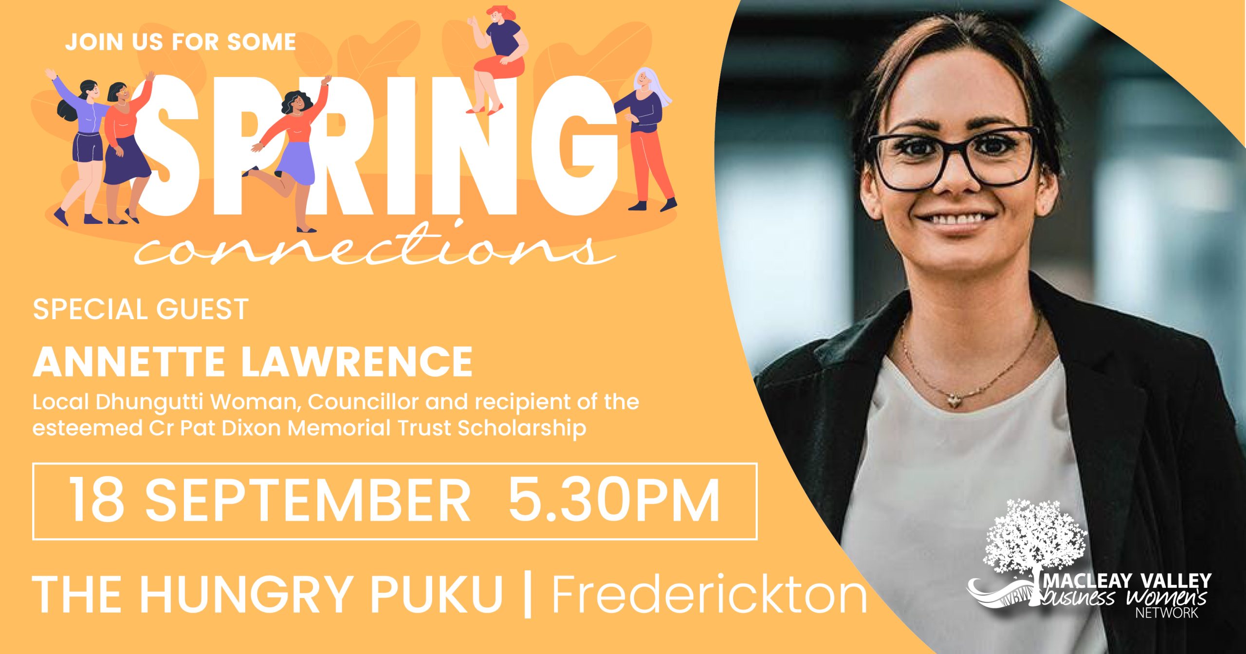 After work nibbles and drinks are always a hot favourite with the network and we’re excited to share in the ambiance of the Hungry Puku at Frederickton for our next meeting. Tracy has been working on creating a welcoming space at her Fredo premises and we can’t wait to sample some more of her tasty treats! As well as the chance to connect with other local women and enjoy some time together, we’re excited to be welcoming local Councillor Annette Lawrence to our meeting to share her story with us.